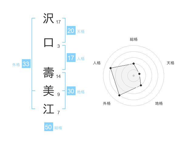 沢口 壽美江さんを姓名の画数から五運を鑑定