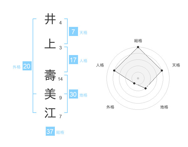 井上 壽美江さんを姓名の画数から五運を鑑定