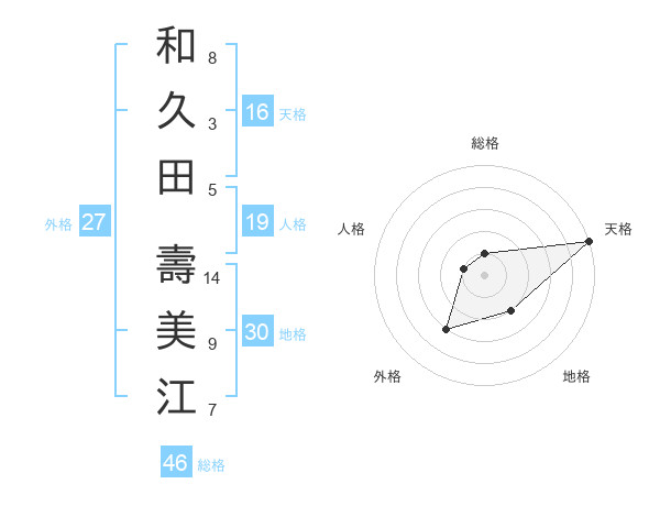 和久田 壽美江さんを姓名の画数から五運を鑑定