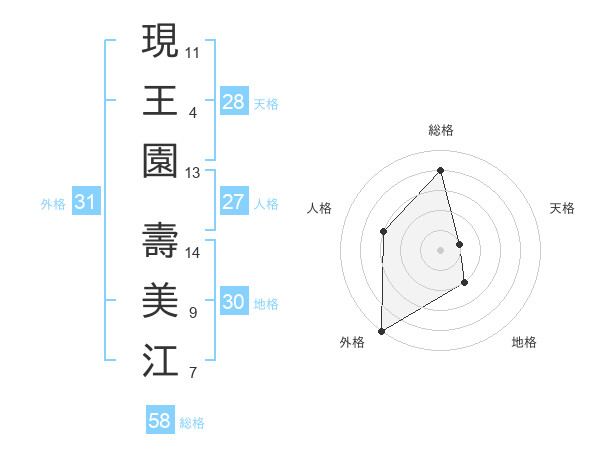 現王園 壽美江さんを姓名の画数から五運を鑑定