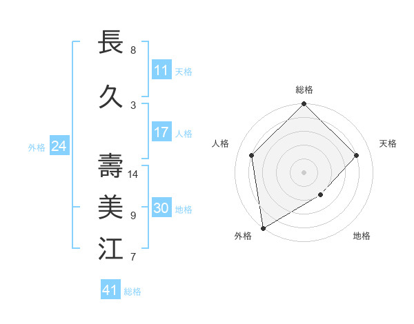 長久 壽美江さんを姓名の画数から五運を鑑定