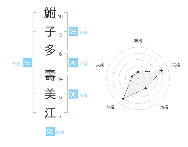 鮒子多 壽美江さんを姓名の画数から五運を鑑定