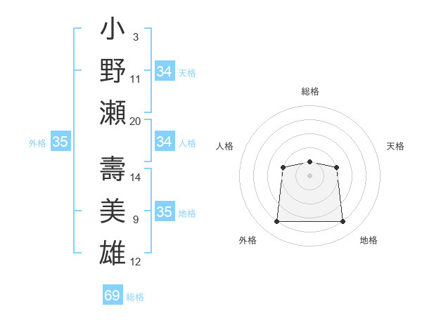 小野瀬 壽美雄さんを姓名の画数から五運を鑑定