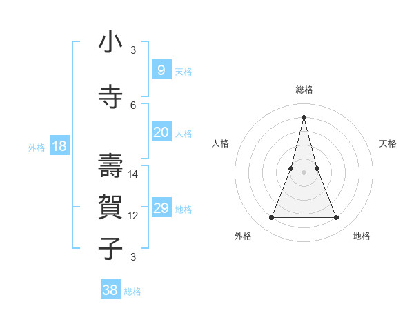 小寺 壽賀子さんの総格は38画の4点!