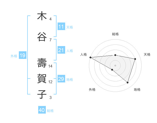 木谷 壽賀子さんを姓名の画数から五運を鑑定