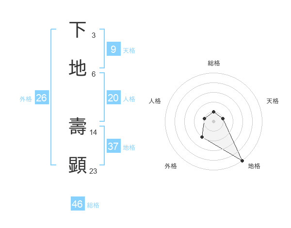 下地 壽顕さんの地格は37画の5点!