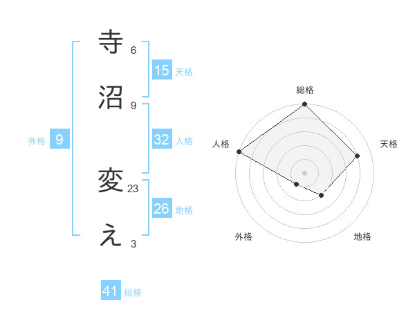 寺沼 変えさんの総格は41画の5点!