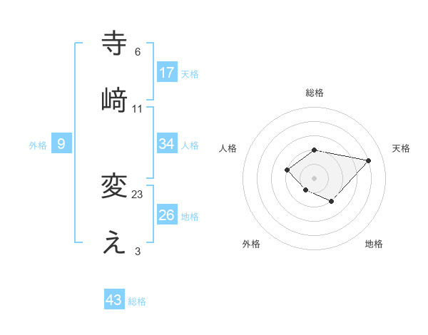 寺﨑 変えさんの総格は43画の2点!