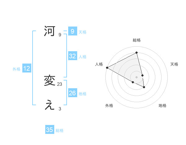 河 変えさんの総格は35画の4点!