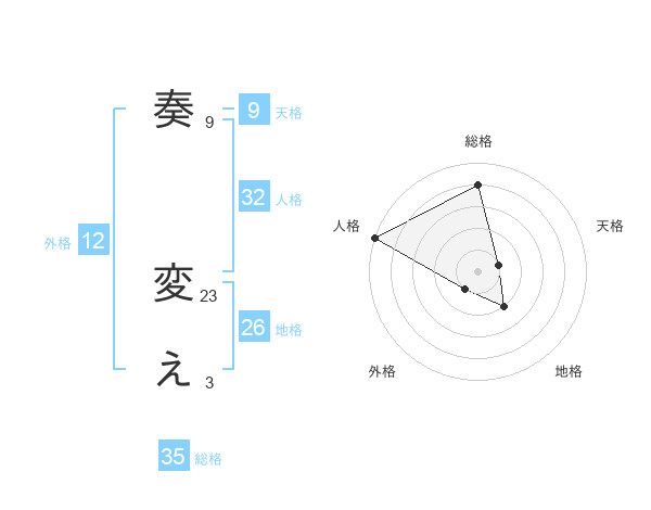 奏 変えさんの総格は35画の4点!