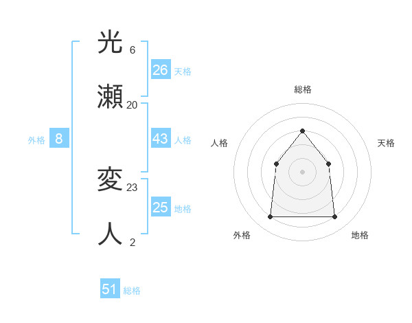 光瀬 変人さんの総格は51画の3点!