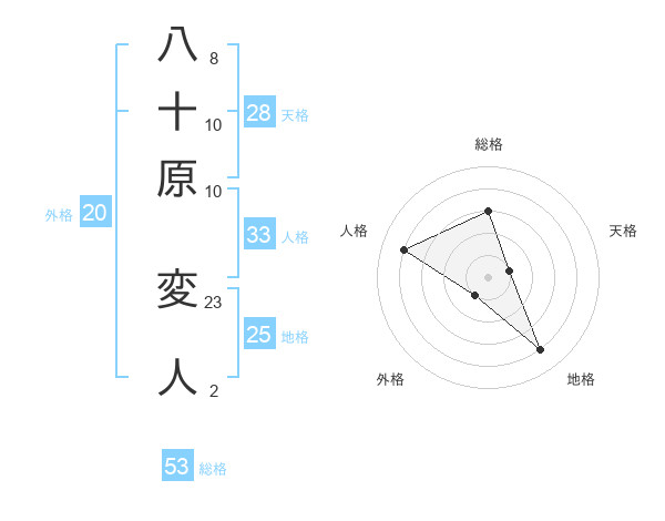 八十原 変人さんの総格は53画の3点!