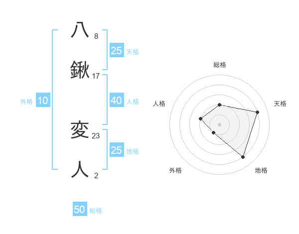 八鍬 変人さんの総格は50画の2点!