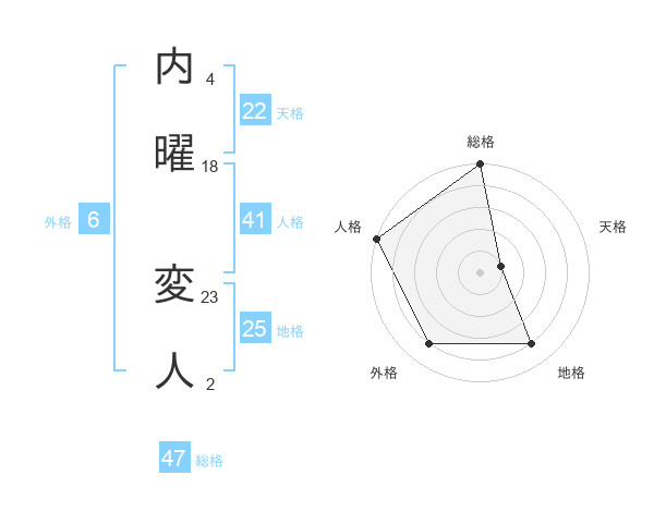 内曜 変人さんの総格は47画の5点!