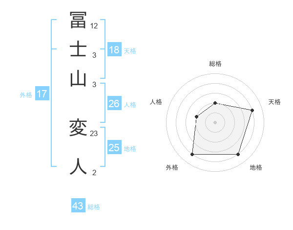 冨士山 変人さんを姓名の画数から五運を鑑定