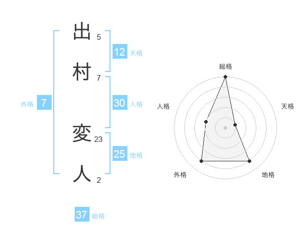 出村 変人さんの総格は37画の5点!