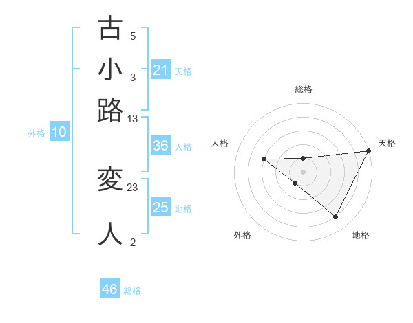 古小路 変人さんの総格は46画の1点!