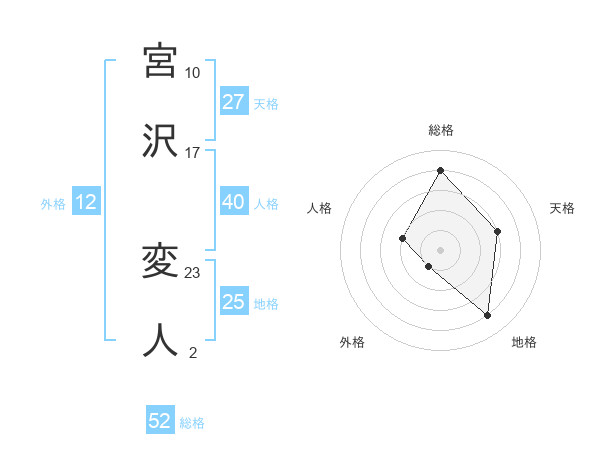 宮沢 変人さんの総格は52画の4点!
