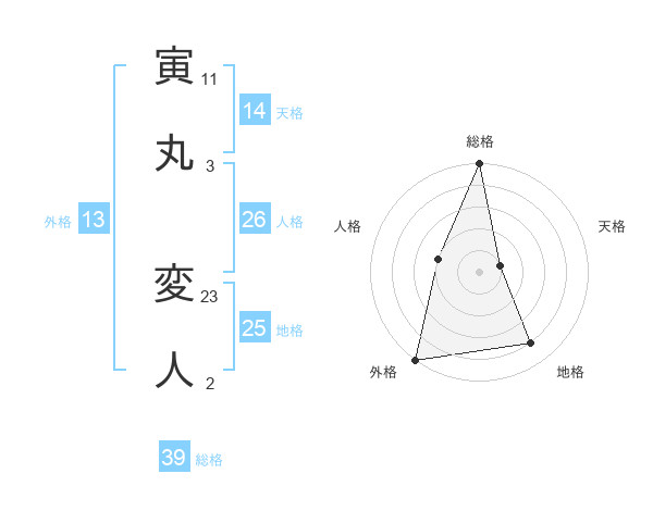 寅丸 変人さんの外格は13画の5点!
