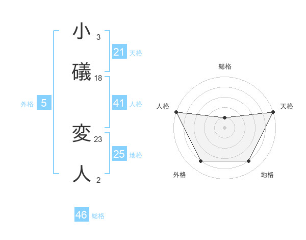 小礒 変人さんの天格は21画の5点!