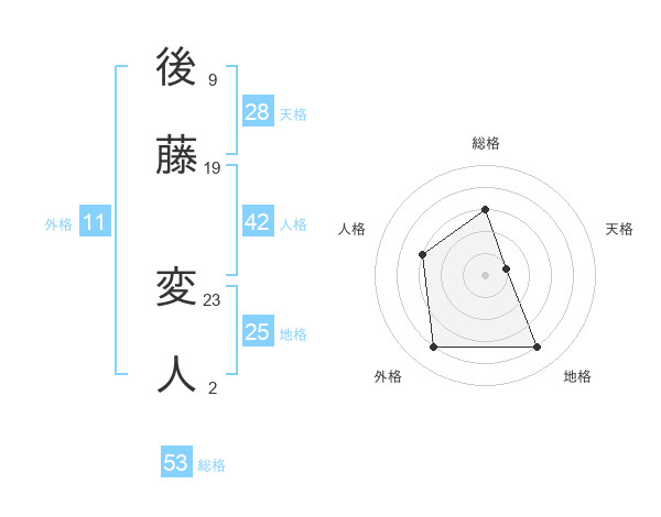 後藤 変人さんの総格は53画の3点!