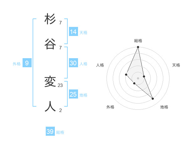 杉谷 変人さんの総格は39画の5点!