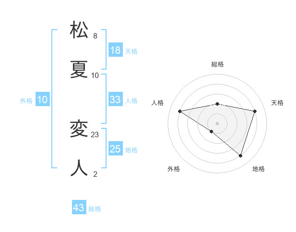 松夏 変人さんの天格は18画の4点!