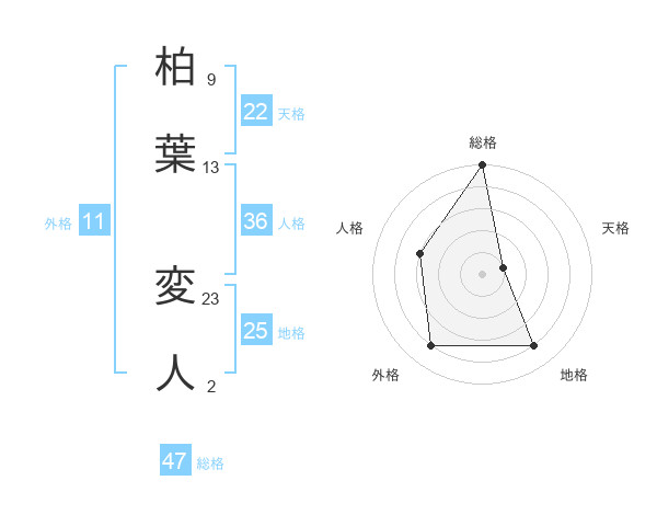 柏葉 変人さんの総格は47画の5点!
