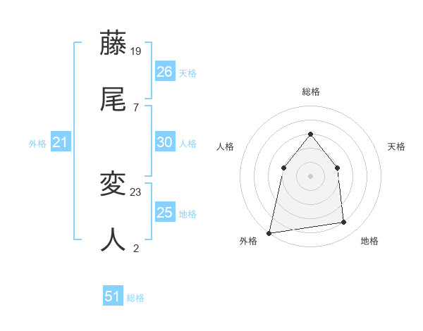 藤尾 変人さんを姓名の画数から五運を鑑定