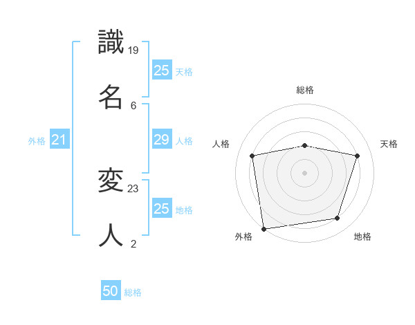 識名 変人さんの総格は50画の2点!