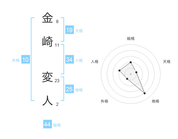 金崎 変人さんを姓名の画数から五運を鑑定