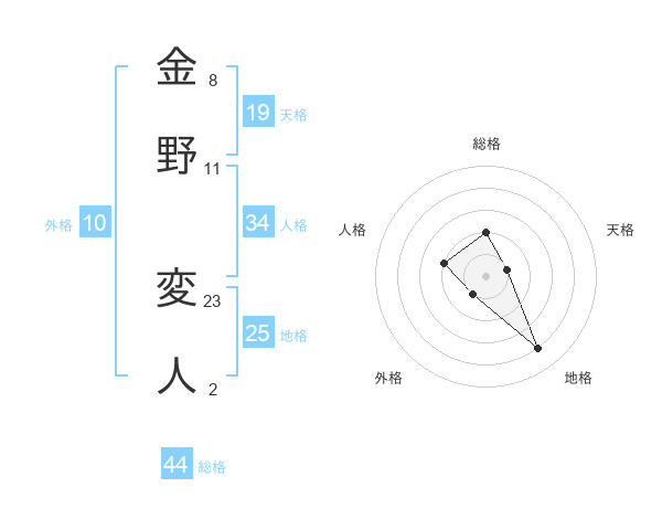 金野 変人さんの総格は44画の2点!