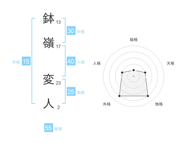 鉢嶺 変人さんの総格は55画の1点!