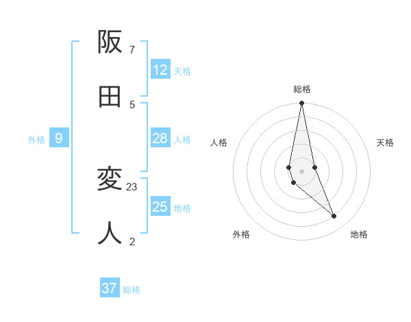 阪田 変人さんの総格は37画の5点!