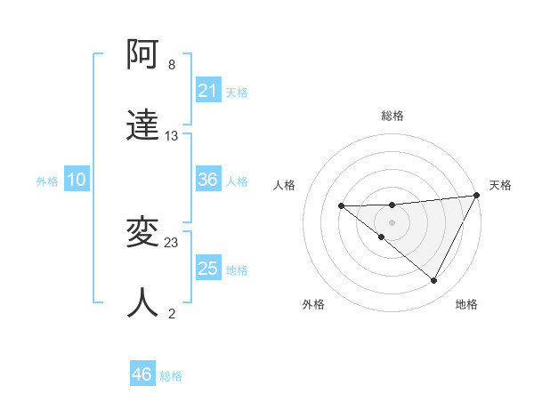 阿達 変人さんの天格は21画の5点!