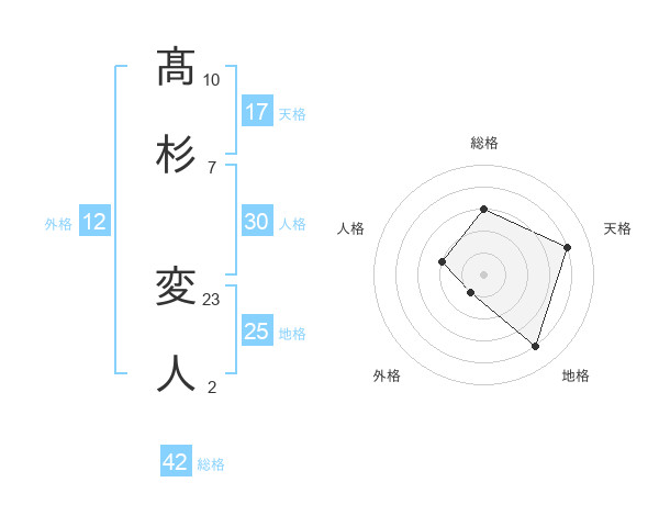 髙杉 変人さんを姓名の画数から五運を鑑定