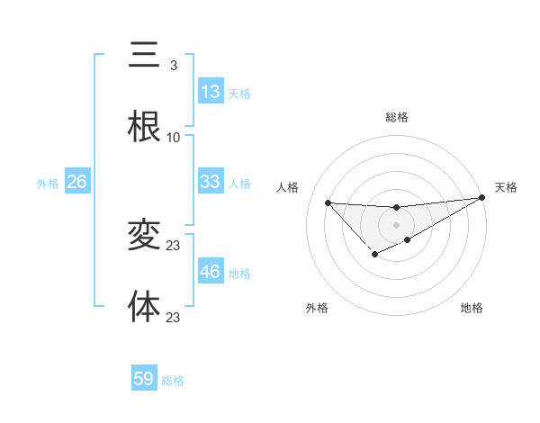三根 変体さんの総格は59画の1点