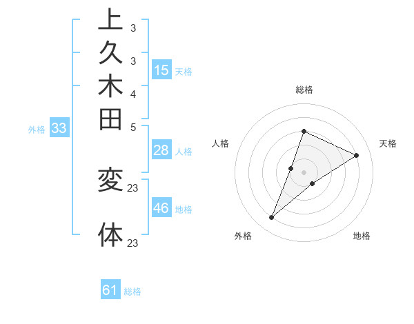 上久木田 変体さんを姓名の画数から五運を鑑定
