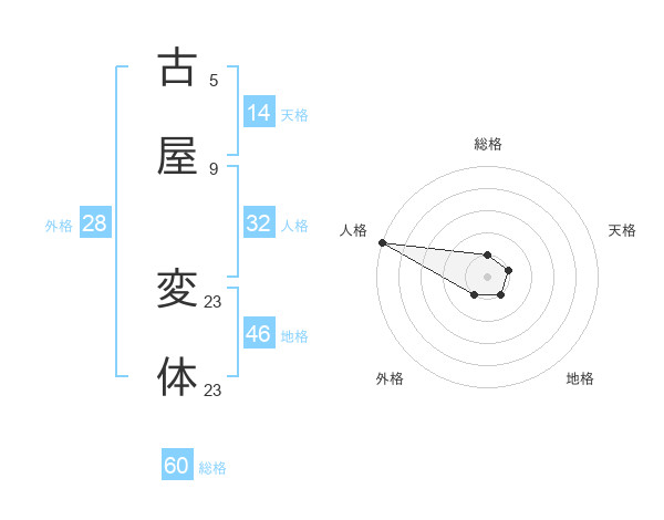 古屋 変体さんの総格は60画の1点!