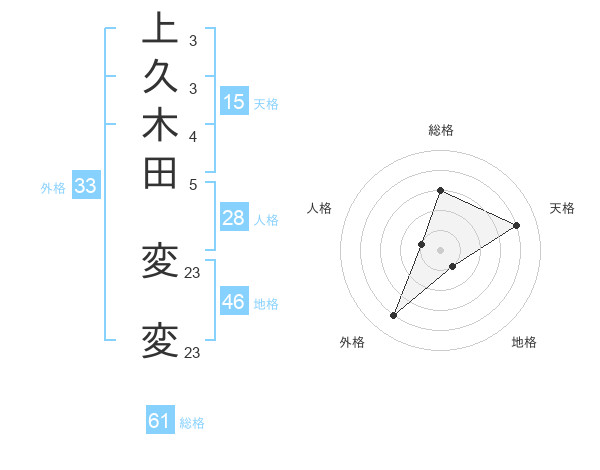 上久木田 変変さんを姓名の画数から五運を鑑定