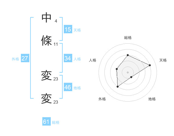 中條 変変さんの天格は15画の4点!