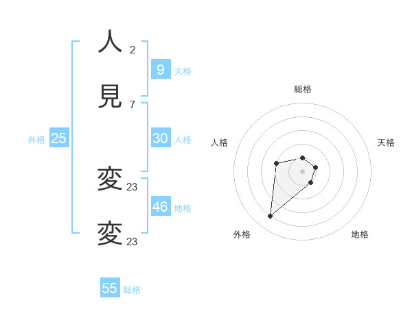 人見 変変さんの総格は55画の1点!