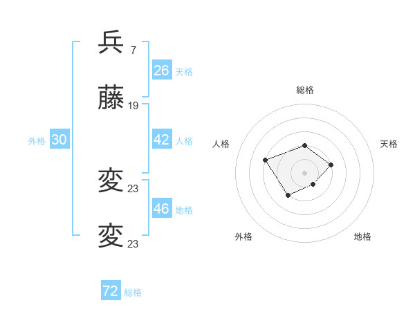 兵藤 変変さんを姓名の画数から五運を鑑定