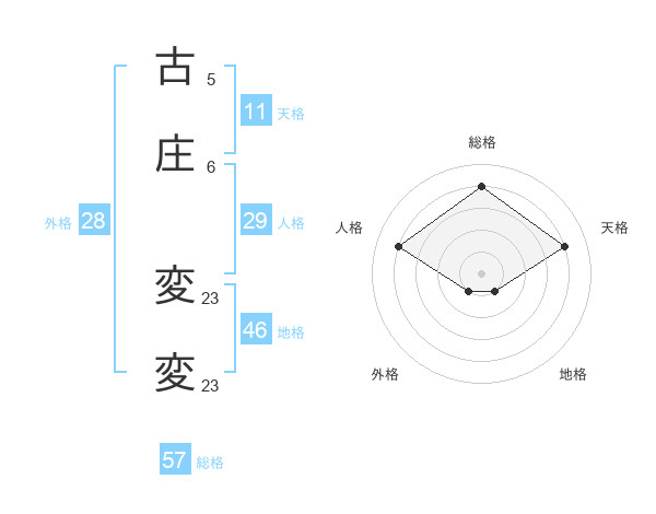 古庄 変変さんの総格は57画の4点!