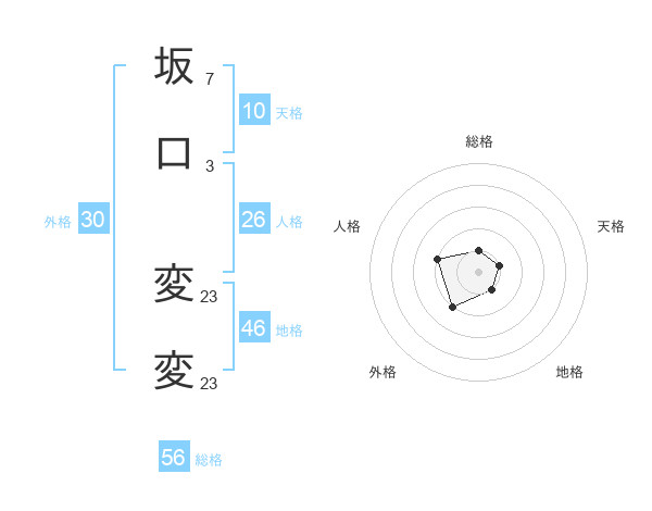 坂口 変変さんの総格は56画の1点!