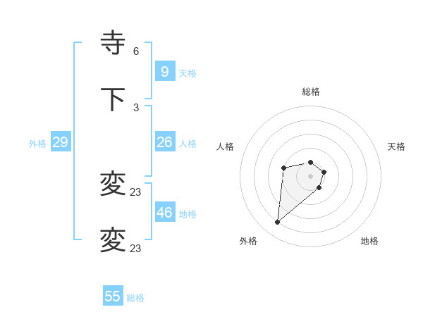 寺下 変変さんの総格は55画の1点!