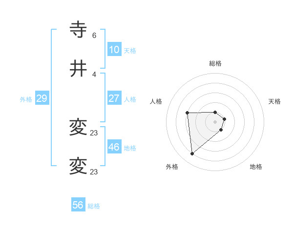 寺井 変変さんの総格は56画の1点!