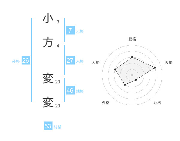 小方 変変さんの総格は53画の3点
