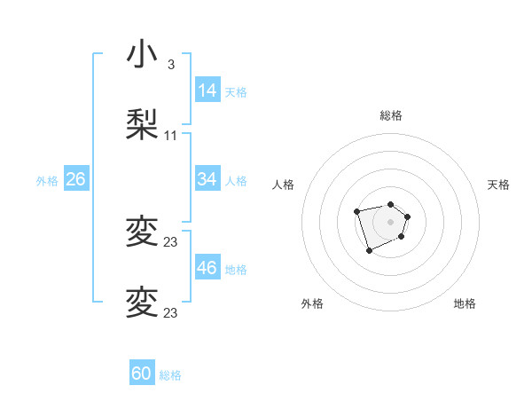 小梨 変変さんの総格は60画の1点!
