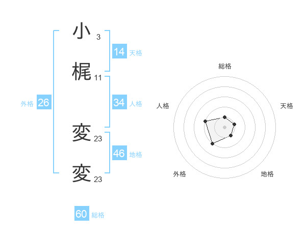 小梶 変変さんの地格は46画の1点!